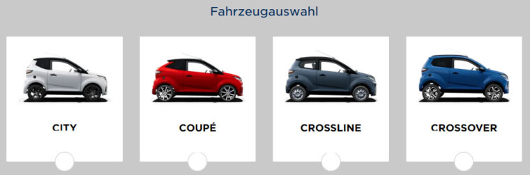 Mit dem Aixam Online Konfigurator gestalten Sie Ihr persönliches AIXAM Traum-Leicht-Auto-Mobil ganz einfach selbst – schnell, übersichtlich und individuell. Wählen Sie Ihr Lieblingsmodell, entscheiden Sie sich für Ausstattung, Farbe und Antrieb und sehen Sie sofort den aktuellen Preis für Fahrzeug und Optionen.